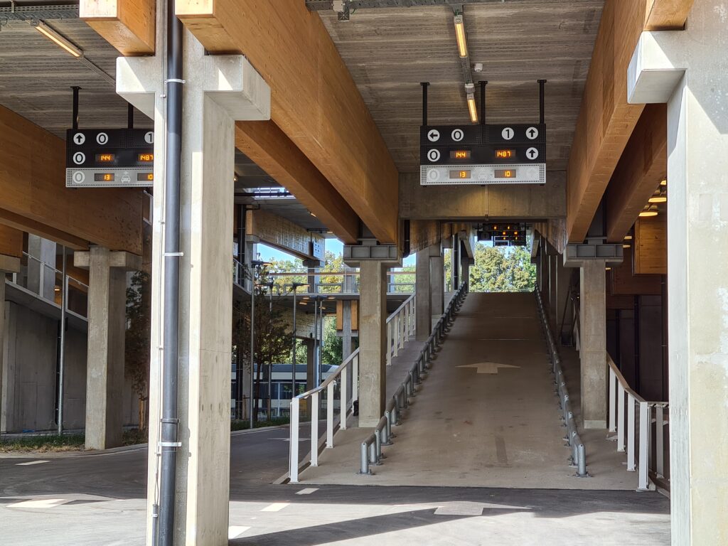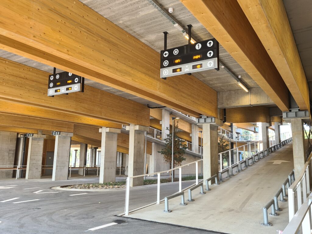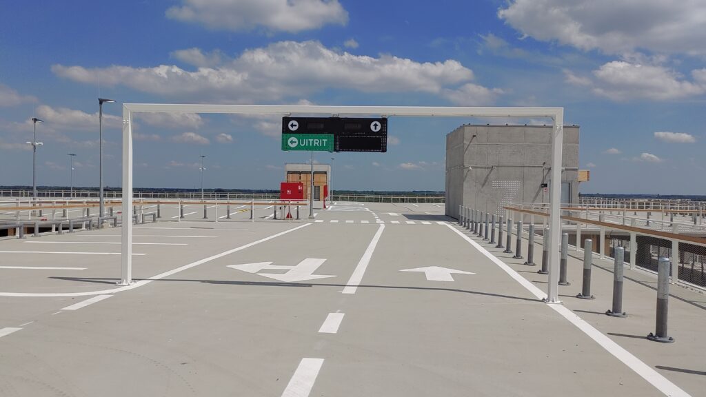 Displays bij inritten, verdiepingen of rijstroken tonen hoeveel plekken beschikbaar zijn en sturen bestuurders automatisch de juiste richting op.